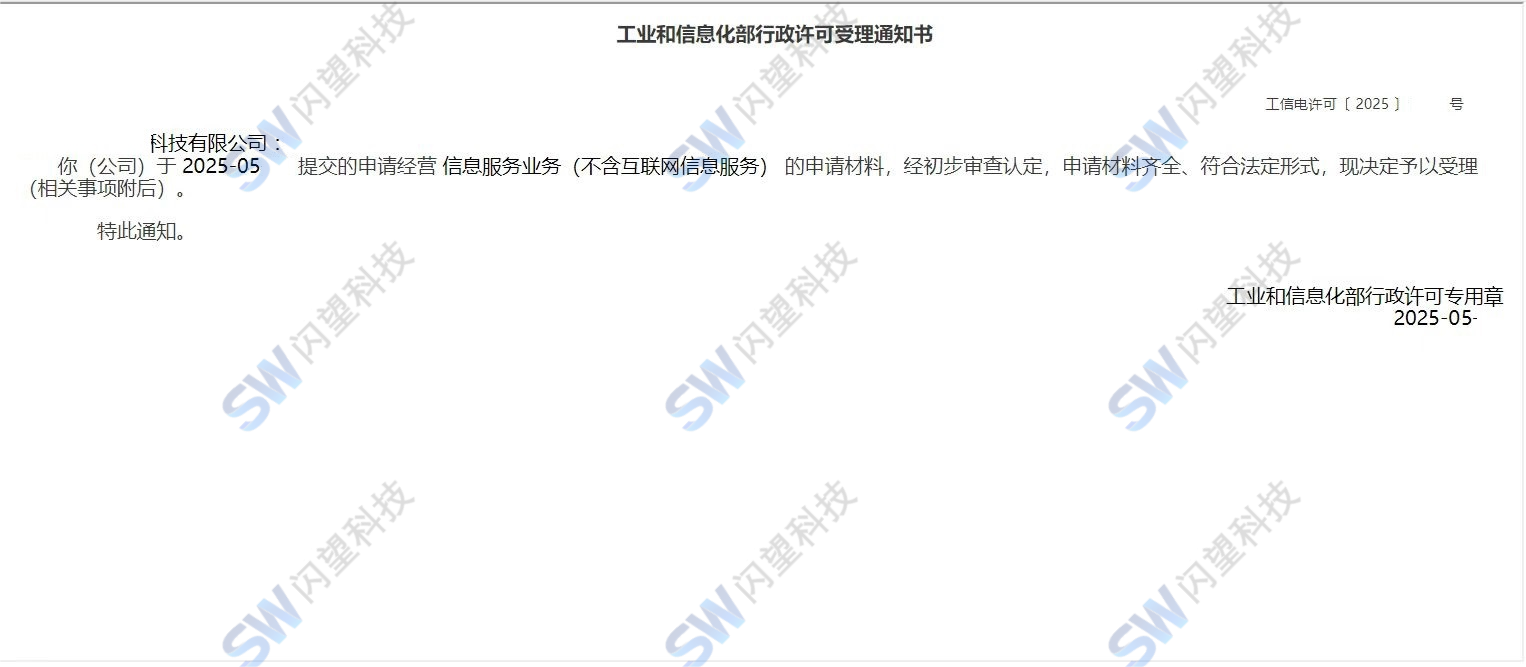 受理喜报!闪望科技客户某科技公司全网SP证业务申请成功受理!